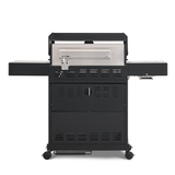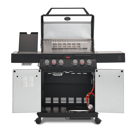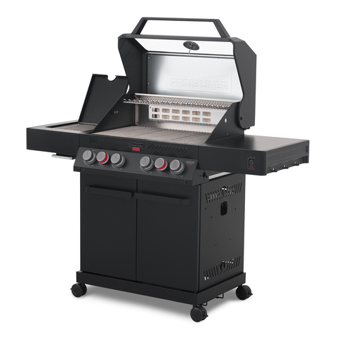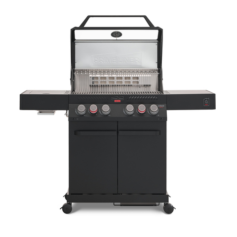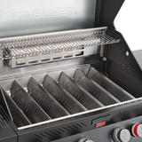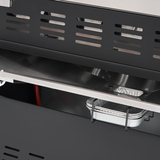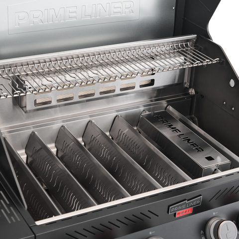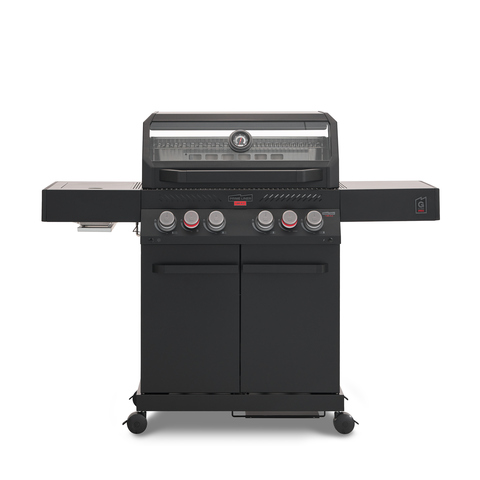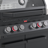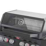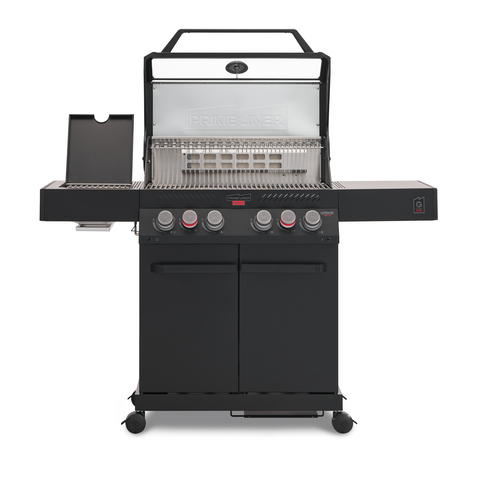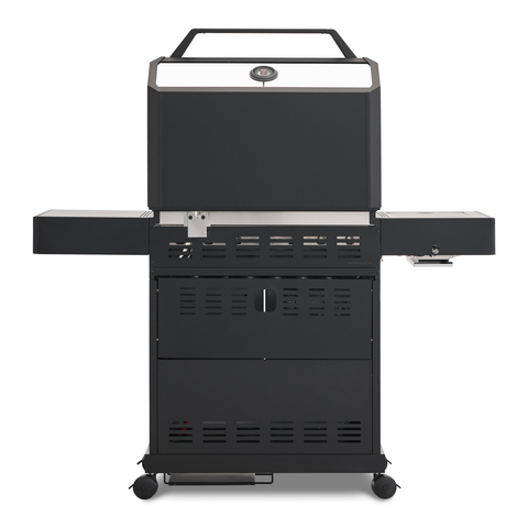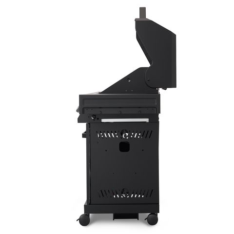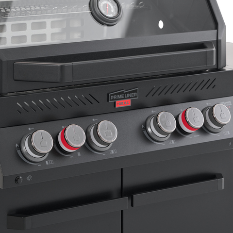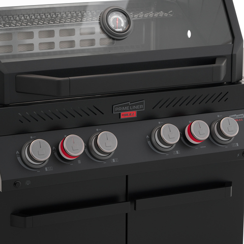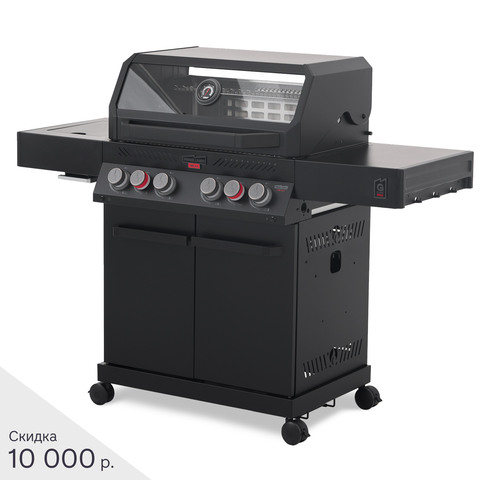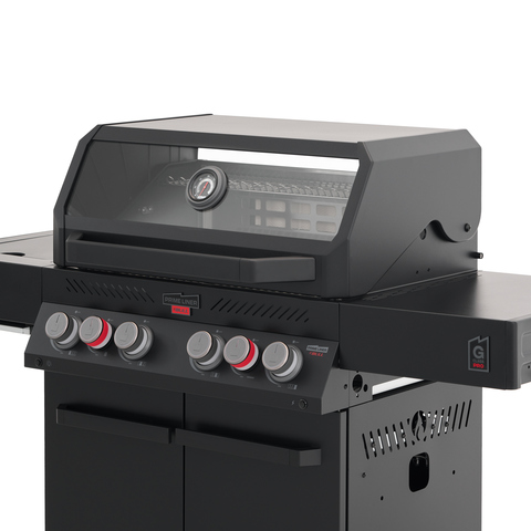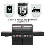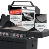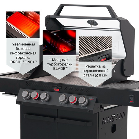 Гриль обладает выдающейся мощностью — 4 основные турбогорелки Blade, увеличенная боковая инфракрасная горелка BROIL ZONE+ и задняя инфракрасная горелка.