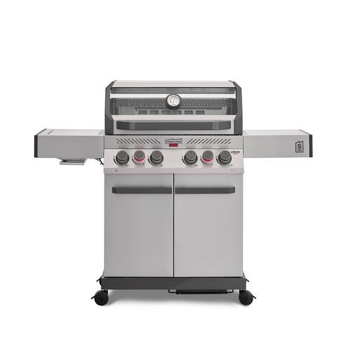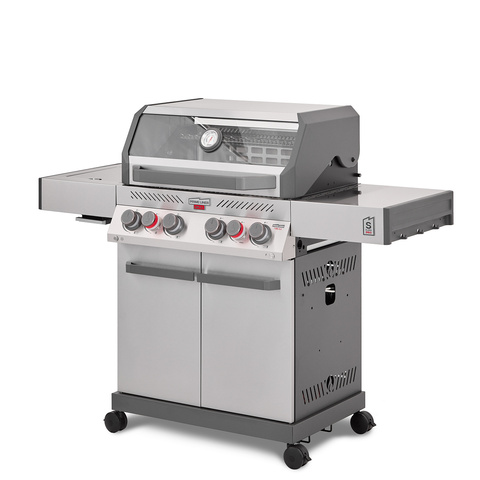 Гриль обладает выдающейся мощностью — 4 основные турбогорелки Blade, увеличенная боковая инфракрасная горелка BROIL ZONE+ и задняя инфракрасная горелка.