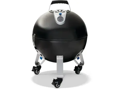Три ножки с колёсами со стопорами обеспечивают устойчивость гриля.
