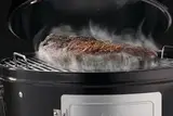 Каждый элемент гриля имеет свои особенности. Крышка, очаг и ярусы выполнены из стали с жаростойкой фарфоровой эмалью. Ручка крышки из термостойкого пластика защищает руки от высоких температур. Верхняя шиберная заслонка регулирует температуру, управляя потоком горячего воздуха. На ней есть ручка с термостойкой насадкой и термометр ACCU-PROBE™, показывающий температуру в Фаренгейтах и Цельсиях, с диапазоном для копчения, запекания и обжарки. На внутренней стороне крышки есть штанга для S-образных крючков.