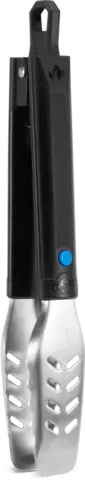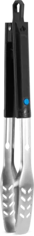 Щипцы также сделаны из нержавеющей стали, но их ручки покрыты термостойким полимером, что предотвращает скольжение. Они легко фиксируются в сложенном виде с помощью специального кольца, которое можно использовать для их размещения на гриле вертикально. Эти щипцы подходят как для маленьких креветок, так и для крупных стейков.