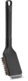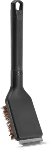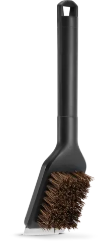 Щётка изготовлена из термостойкой пластмассы с ворсом из прочных натуральных пальмовых щетинок. Она эффективно удаляет загрязнения с решётки гриля, не повреждая её фарфоровое покрытие.