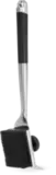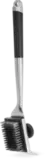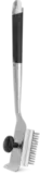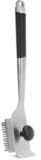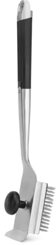 Высококачественная щётка из нержавеющей стали предназначена для эффективного удаления загрязнений с решёток гриля. Ручка изготовлена из нескользящего и термостойкого силикона, а также оснащена открывалкой для бутылок. На конце щётки имеется скребок для очистки от прикипевших остатков пищи. Сменная насадка с эластичным и износостойким ворсом из нержавеющей стали способна справиться с любыми загрязнениями, возникающими в процессе готовки. При необходимости насадку можно заменить на опциональную модель с абразивной губкой, которая эффективно удаляет пригоревшие частицы с любых поверхностей гриля. Крепление насадок на ручке осуществляется с помощью винта с шаровидной рукояткой из термостойкого пластика, обеспечивающего надёжный захват при усиленной очистке. Щётка подходит для чистки решёток гриля при максимальной температуре нагрева.